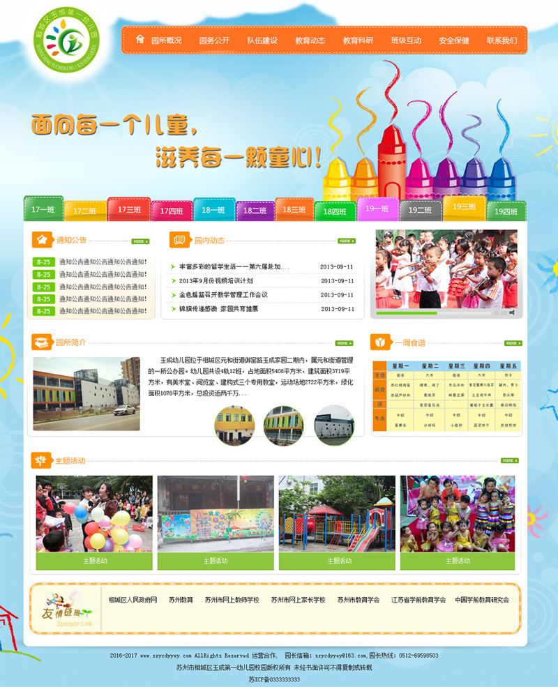 相城區玉成第一幼兒園屬于相城區元和街道管轄,位于御窯路和建元路交界處東南側,于2015年11月啟動建設,2017年9月正式啟用的一所高標準公辦幼兒園,設計規模為4 軌12班,園內有“音樂活動室、美術活動室、科學發現室、幼兒閱讀室、多功能廳”等多個專用教室,總投資3000萬。